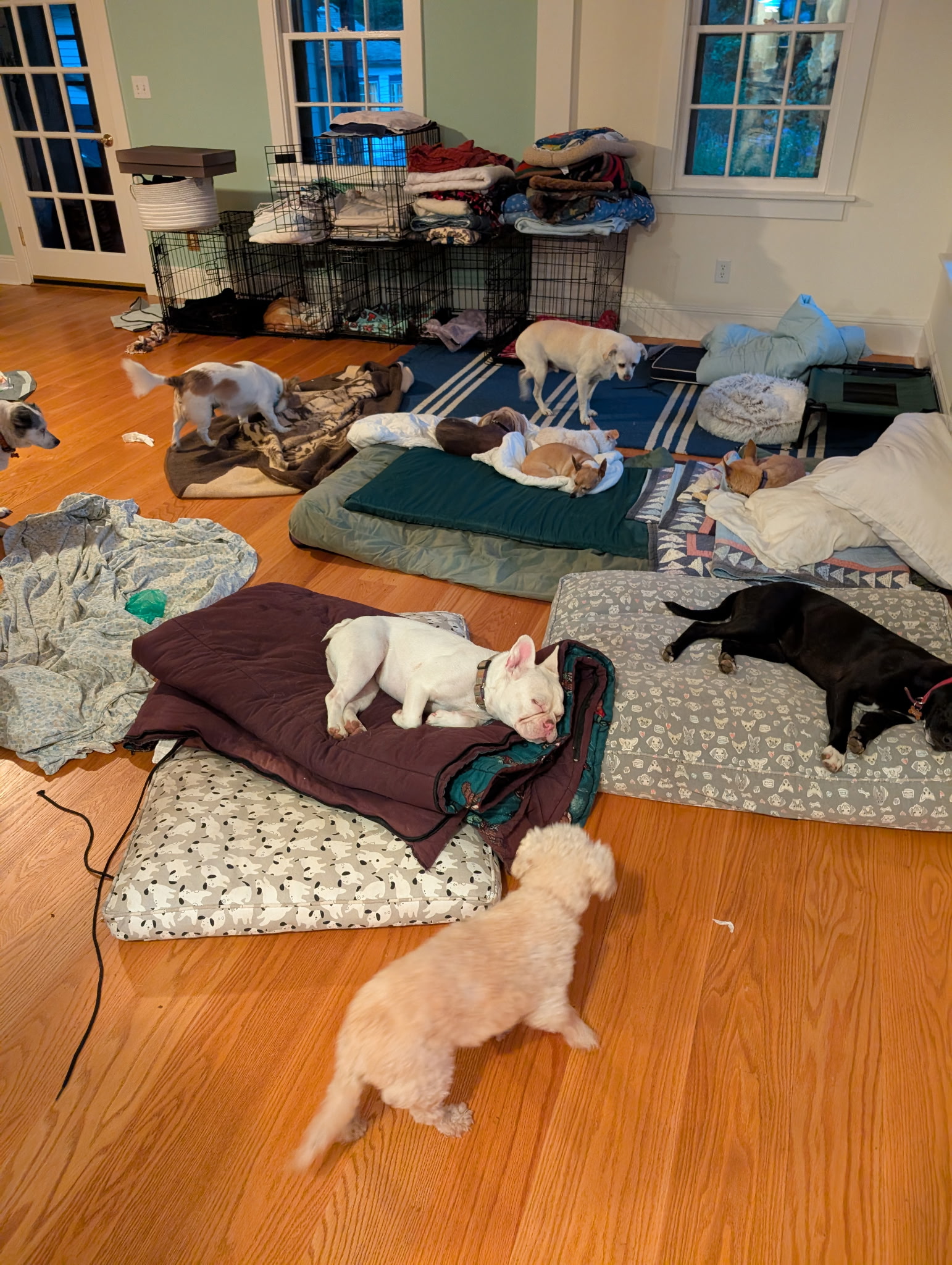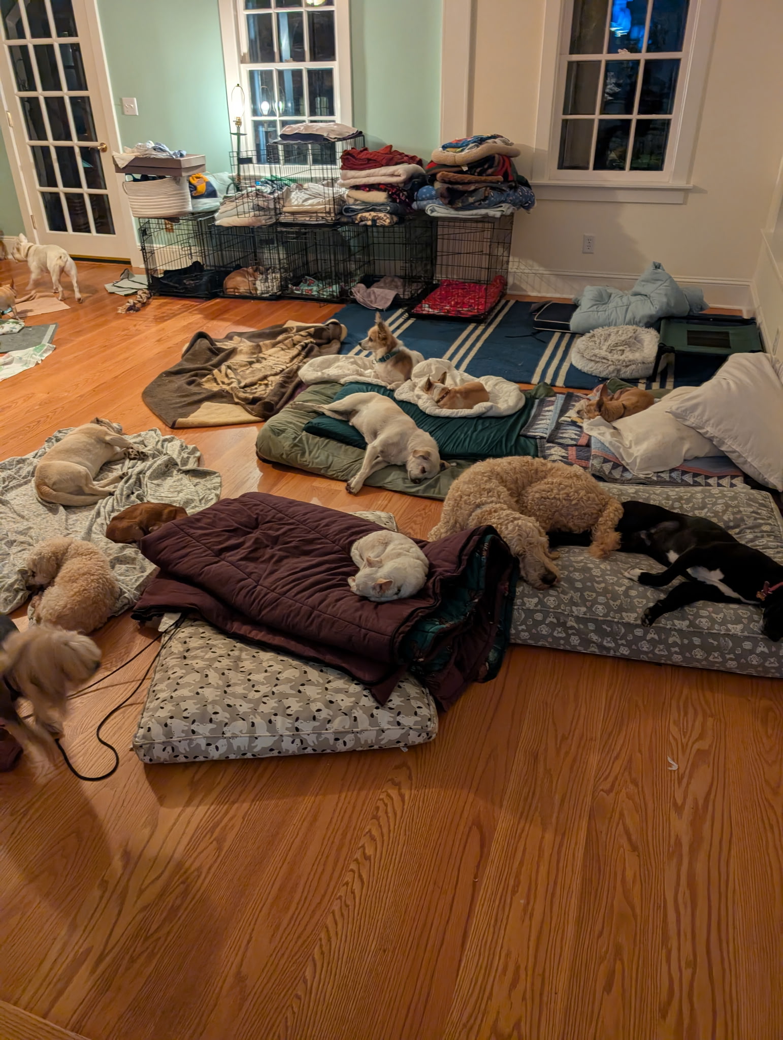 Life is different in the East but it is where we incorporated and it feels good to be back. More importantly the dogs and Cat traveled well, settled in immediately and are having a ball in the green grass. We have already had two adoptions, both past adopters.