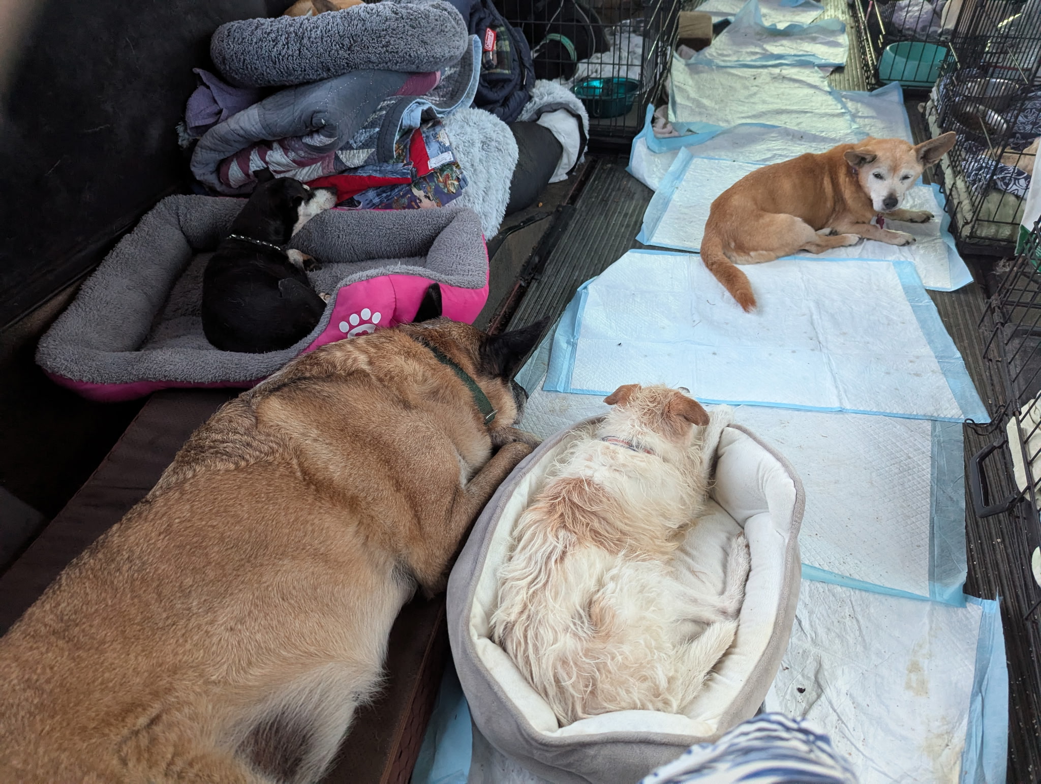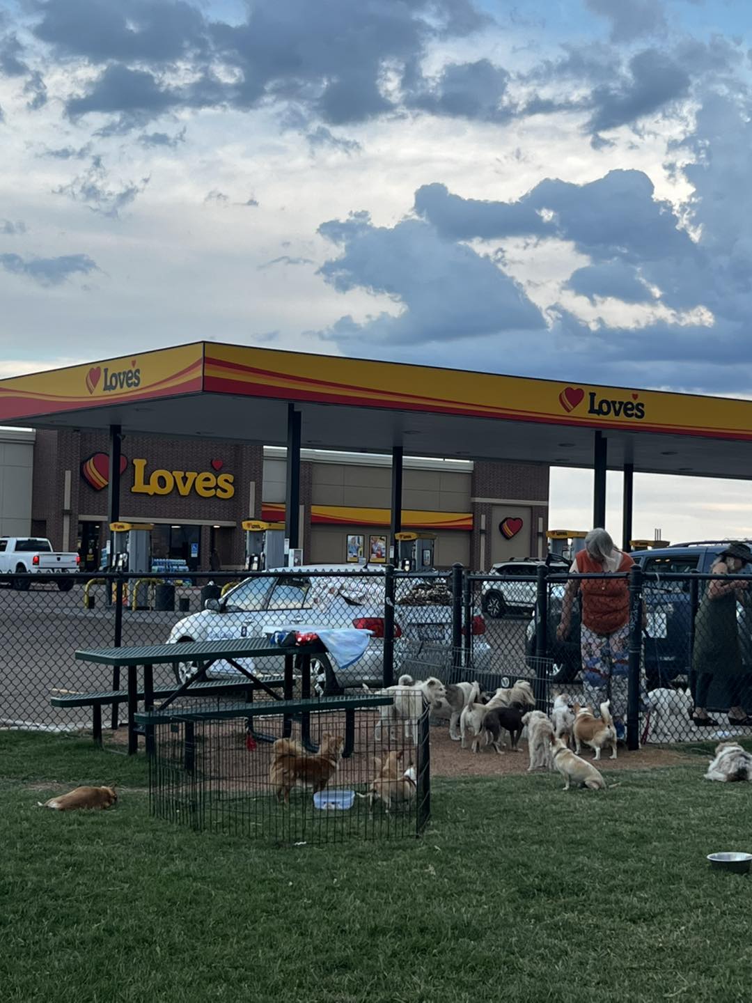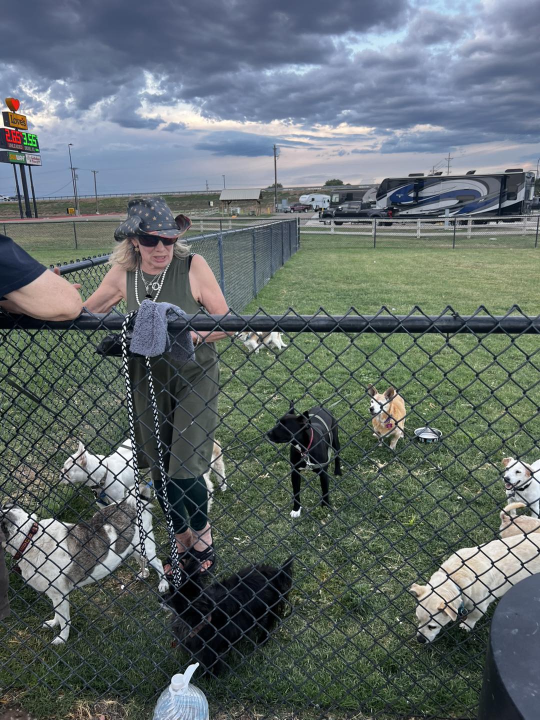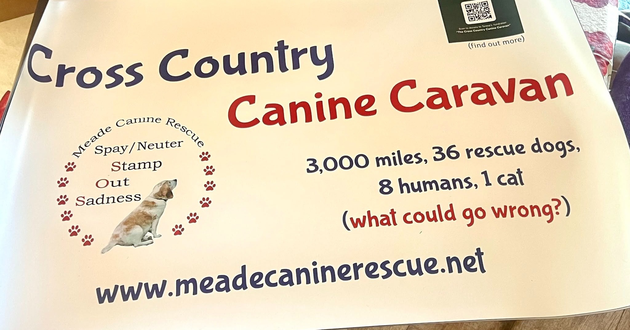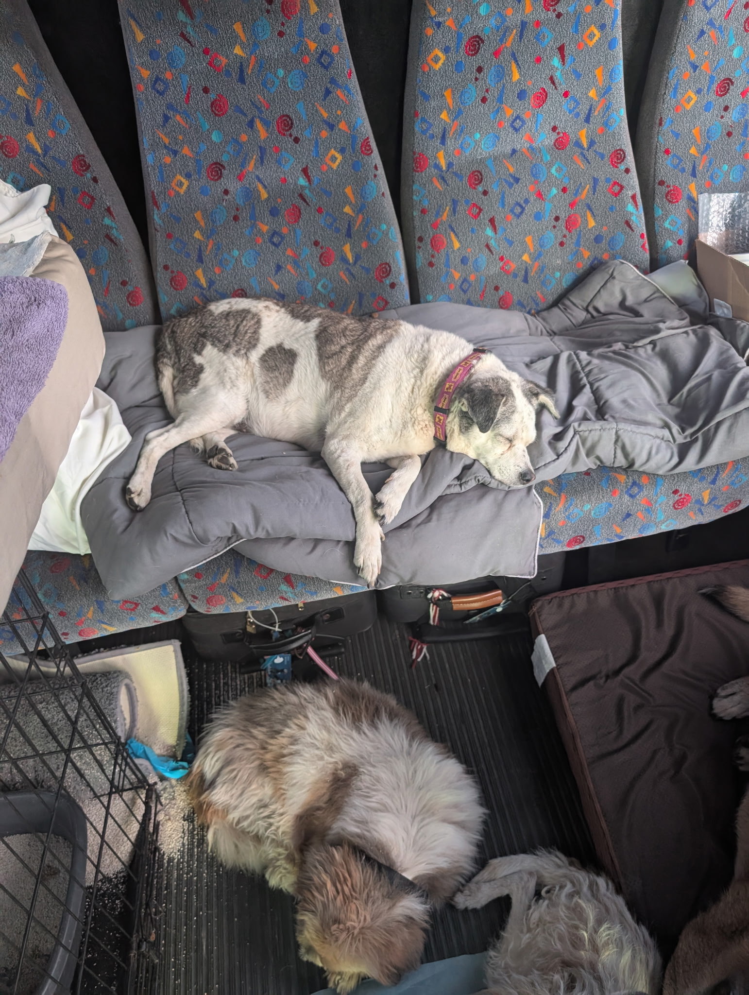 Helped with last minute loading by Sheila & Jeff K, Chris K, Patty O, Lisa B, and Stephanie A, we bid farewell to our years in Creston as 4 vehicles ambled east on a journey that would take 180 hours out of the lives of Chris Crofford, Kay Desmond, Susan and Bill Massey, Lori Hernandez, Teresa Rhyne, Tim Furman, Charlotte Meade, Cat and 33 dogs.
