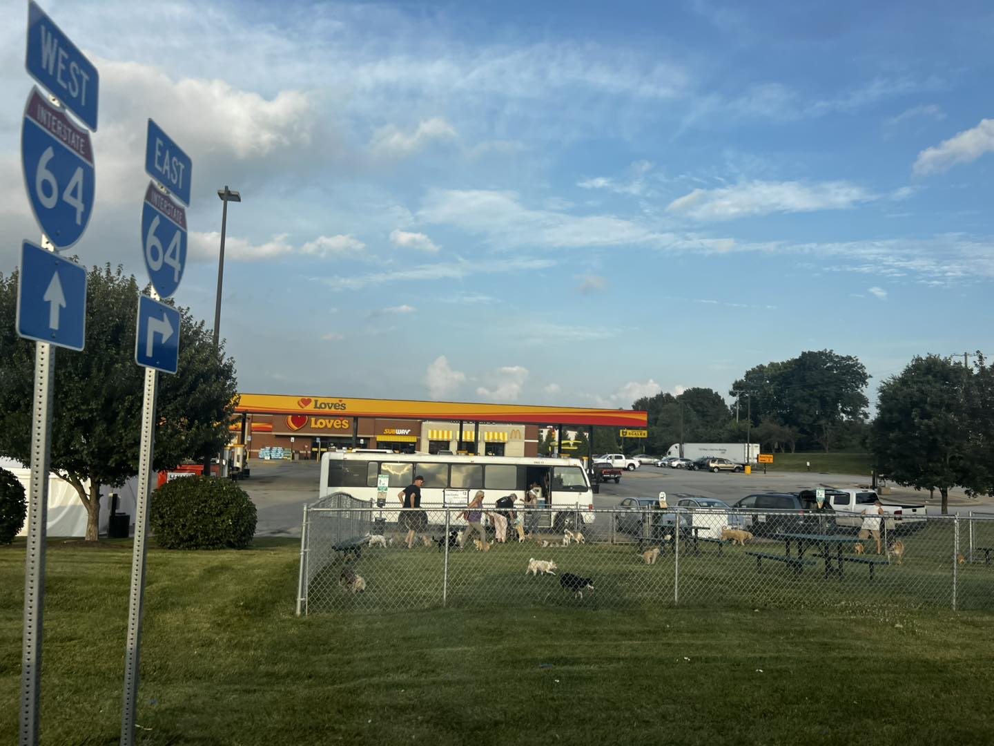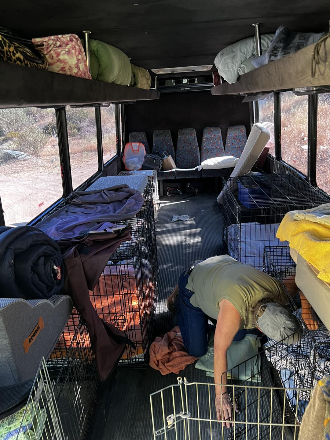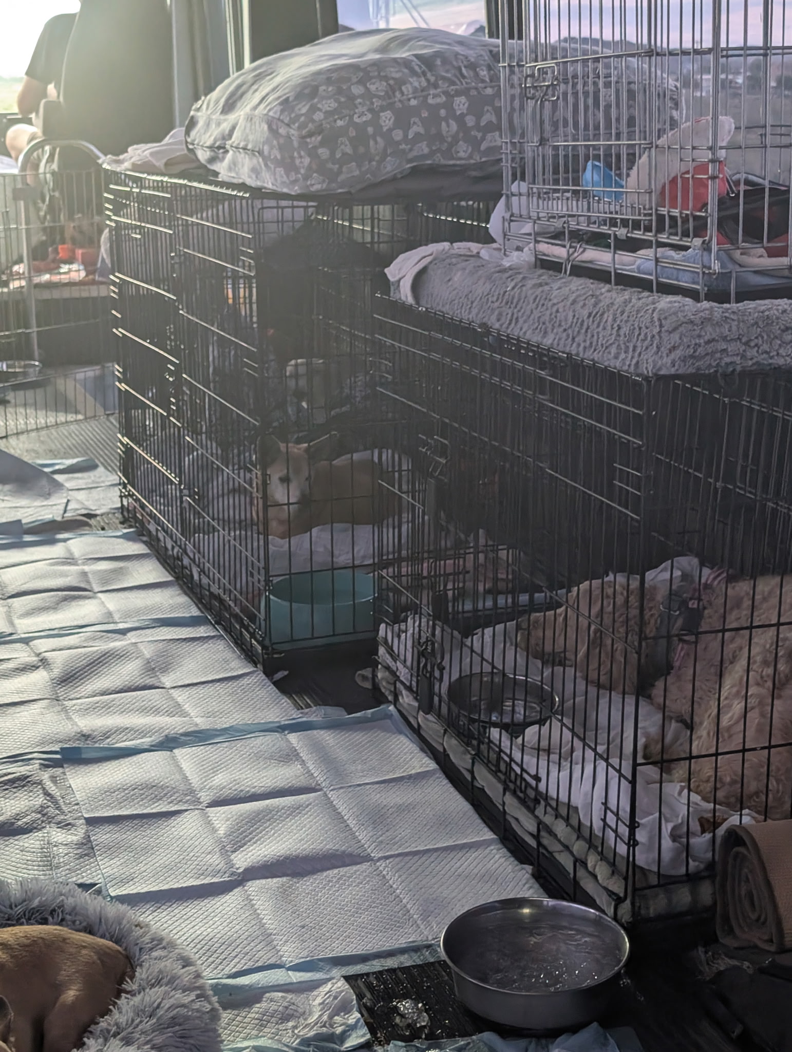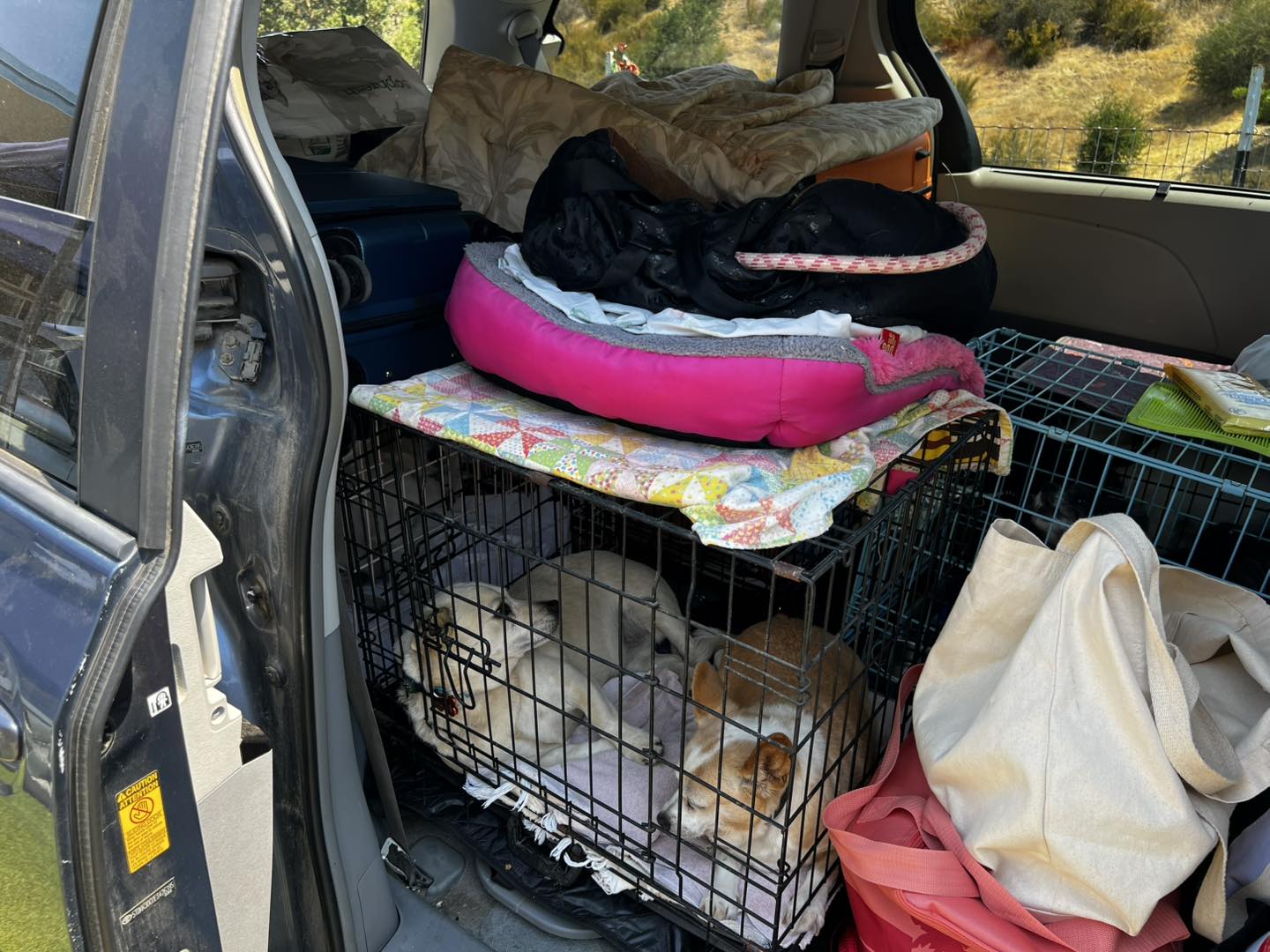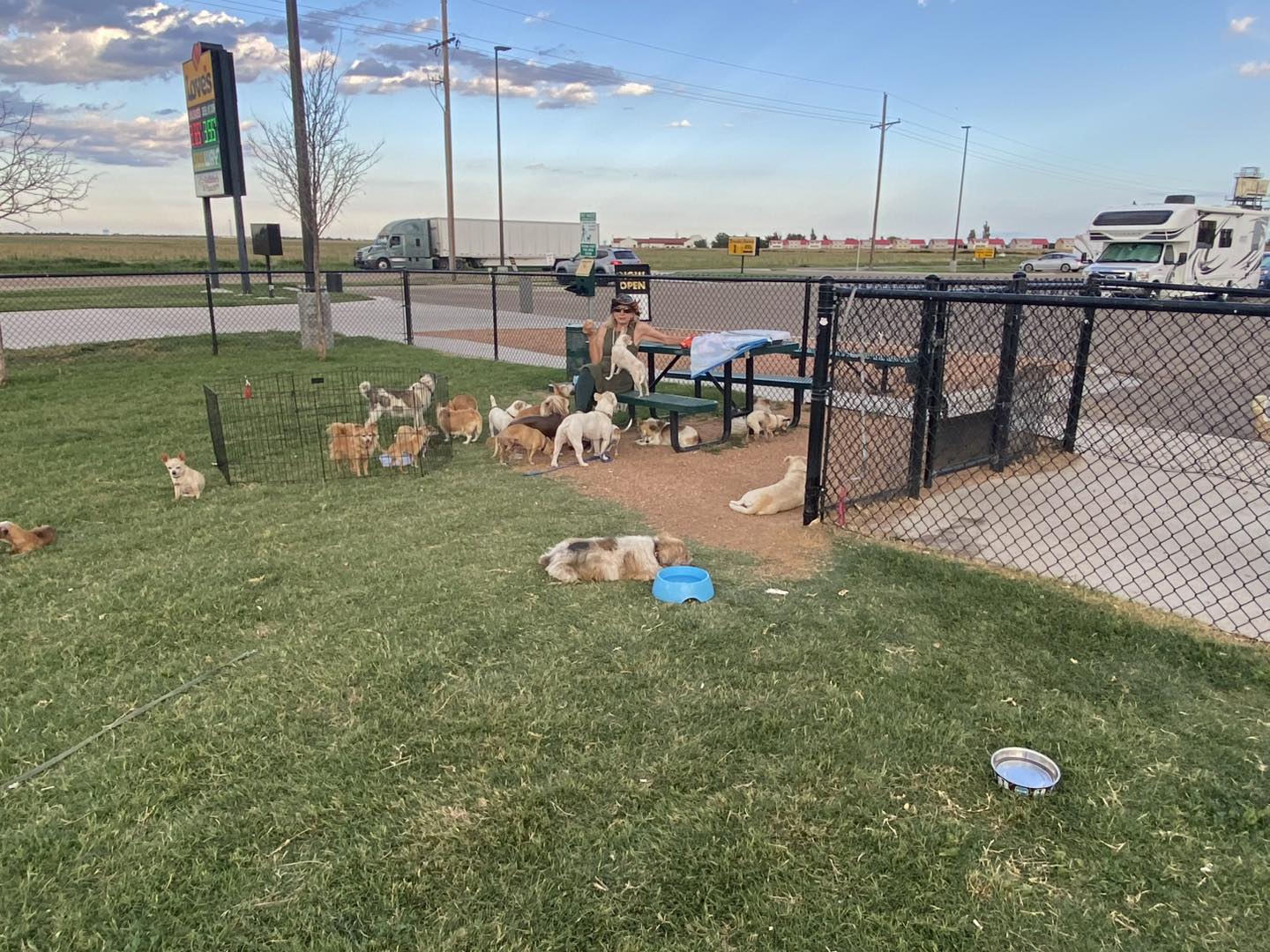 Helped with last minute loading by Sheila & Jeff K, Chris K, Patty O, Lisa B, and Stephanie A, we bid farewell to our years in Creston as 4 vehicles ambled east on a journey that would take 180 hours out of the lives of Chris Crofford, Kay Desmond, Susan and Bill Massey, Lori Hernandez, Teresa Rhyne, Tim Furman, Charlotte Meade, Cat and 33 dogs.