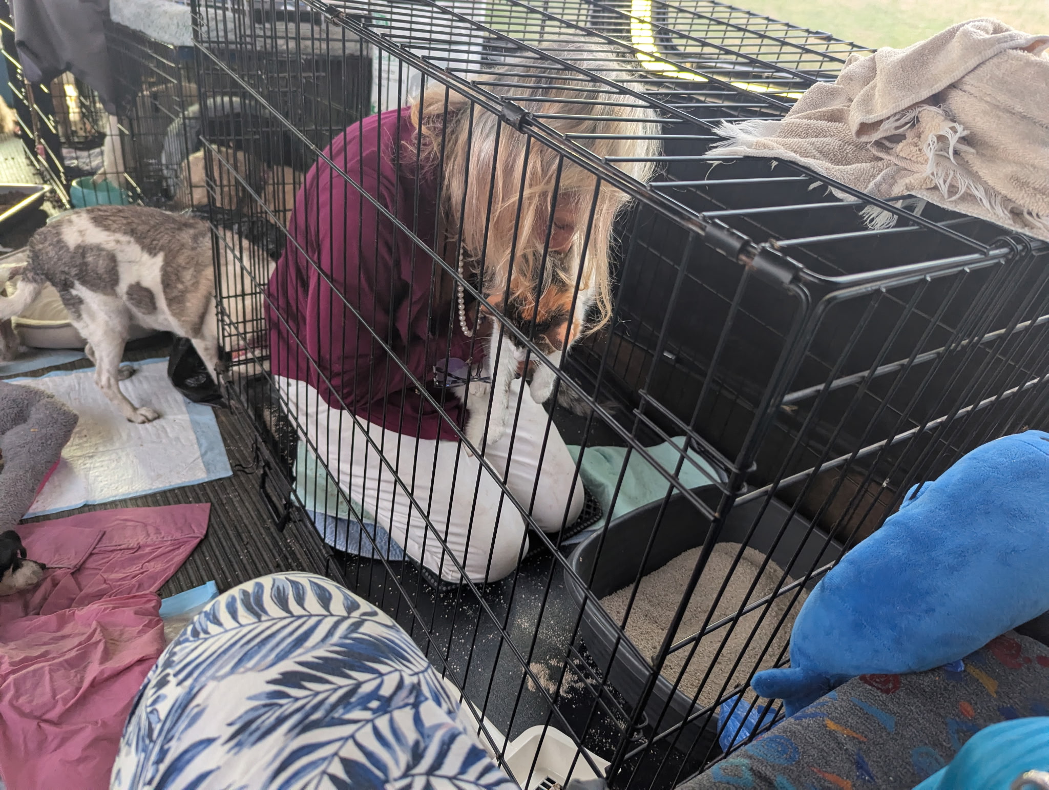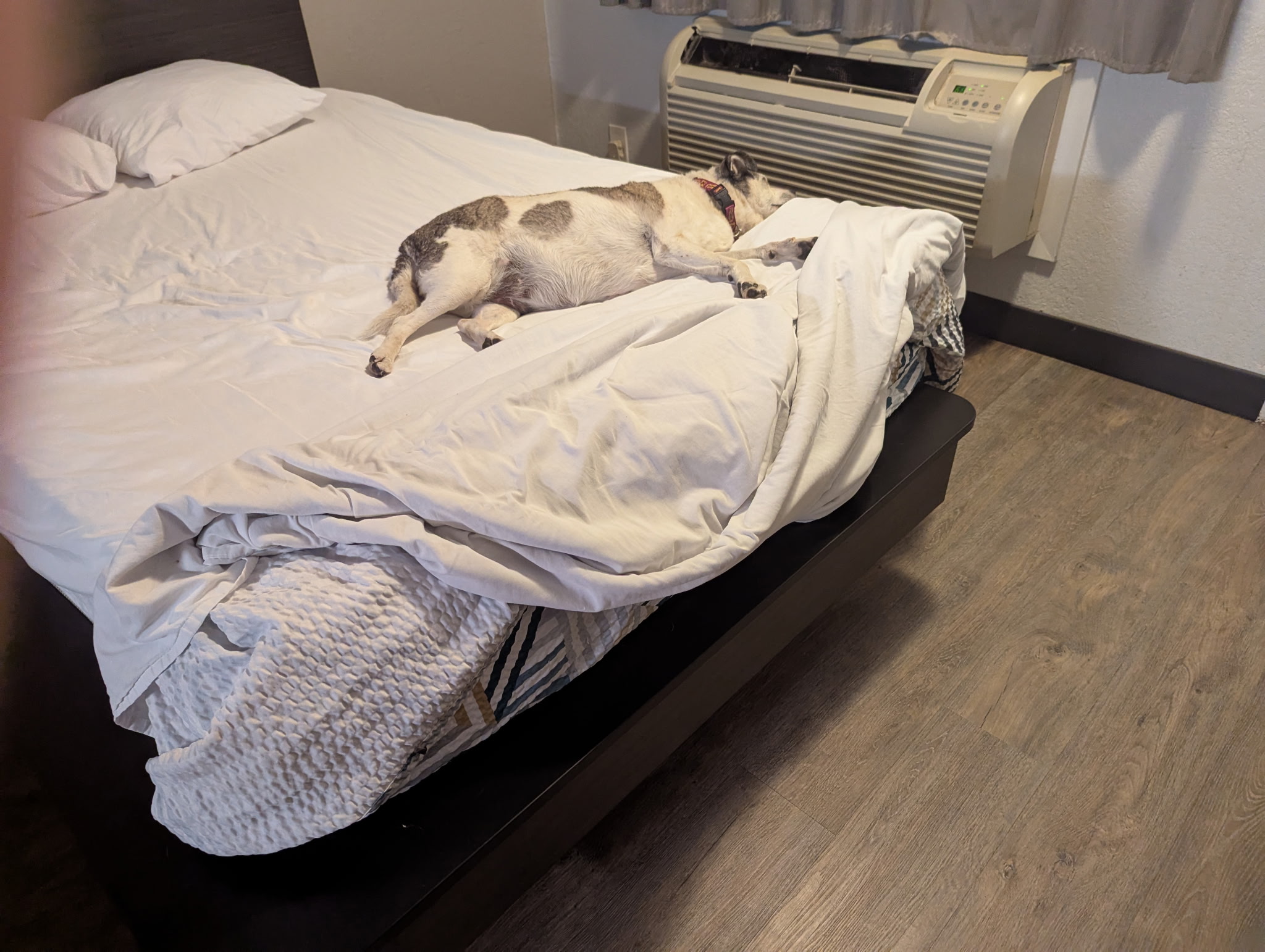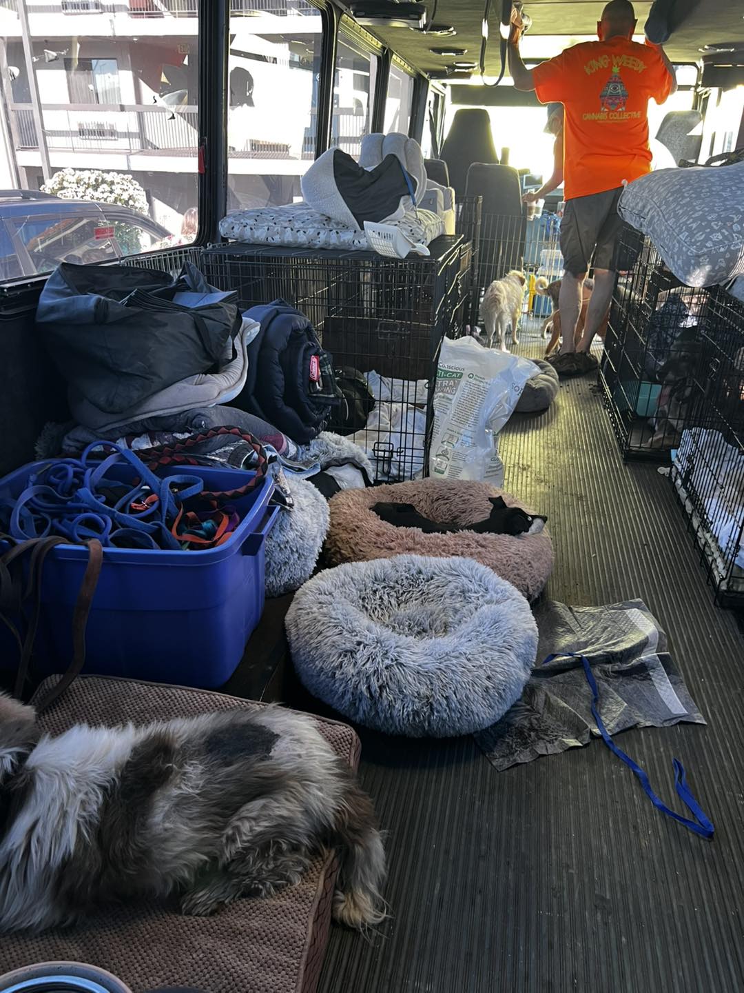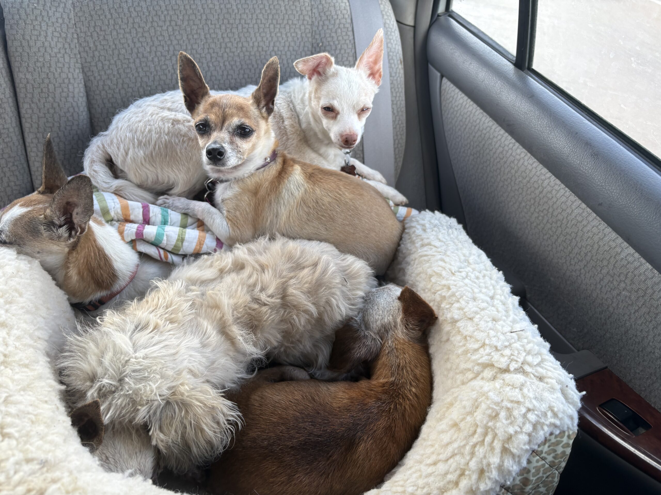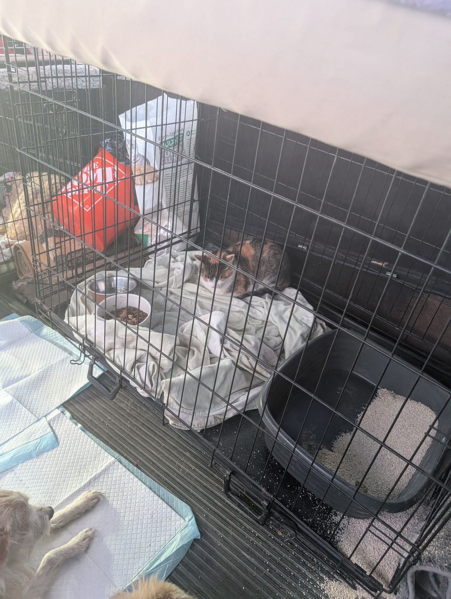 Helped with last minute loading by Sheila & Jeff K, Chris K, Patty O, Lisa B, and Stephanie A, we bid farewell to our years in Creston as 4 vehicles ambled east on a journey that would take 180 hours out of the lives of Chris Crofford, Kay Desmond, Susan and Bill Massey, Lori Hernandez, Teresa Rhyne, Tim Furman, Charlotte Meade, Cat and 33 dogs.