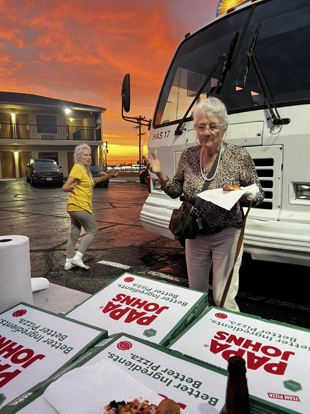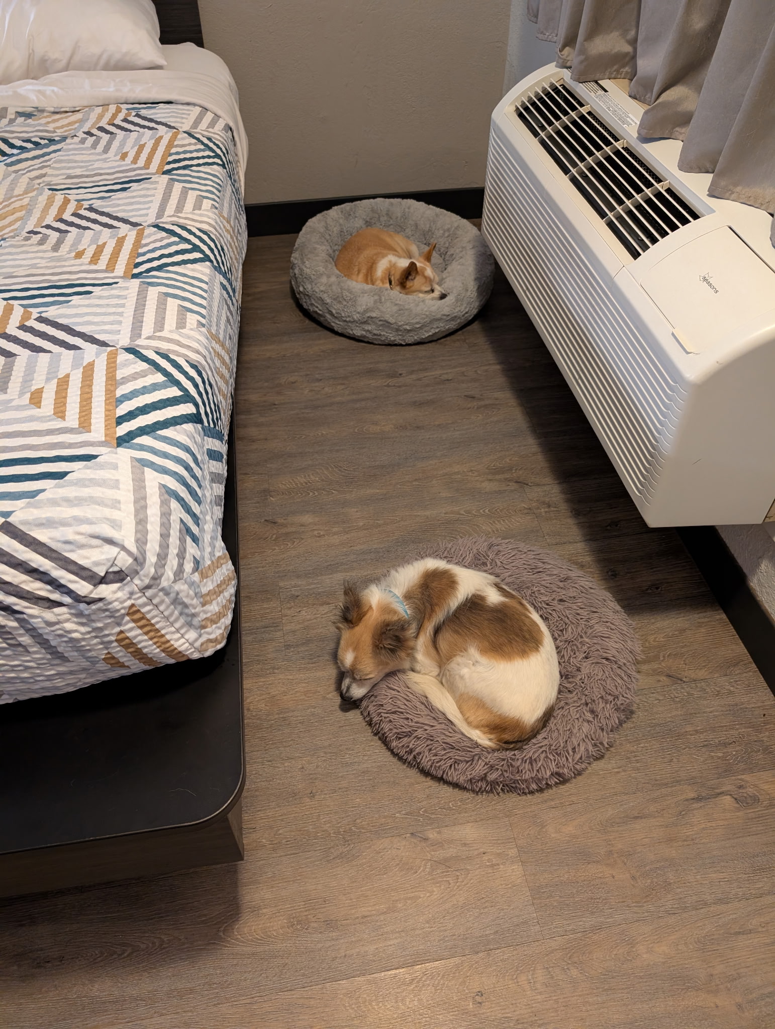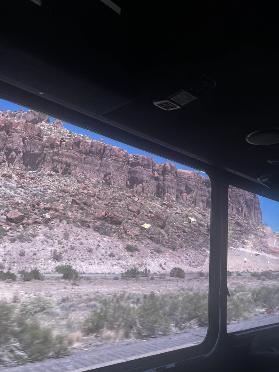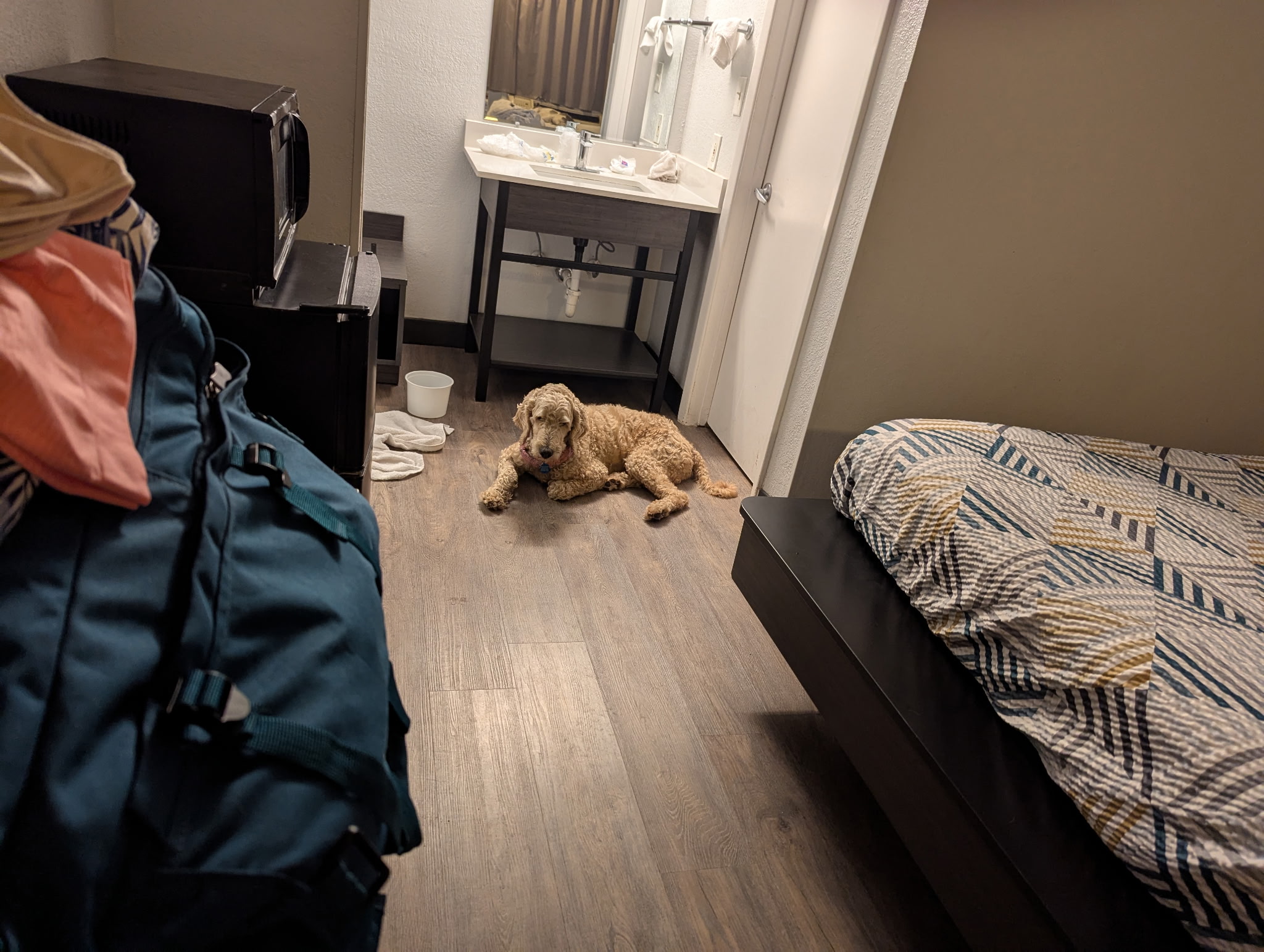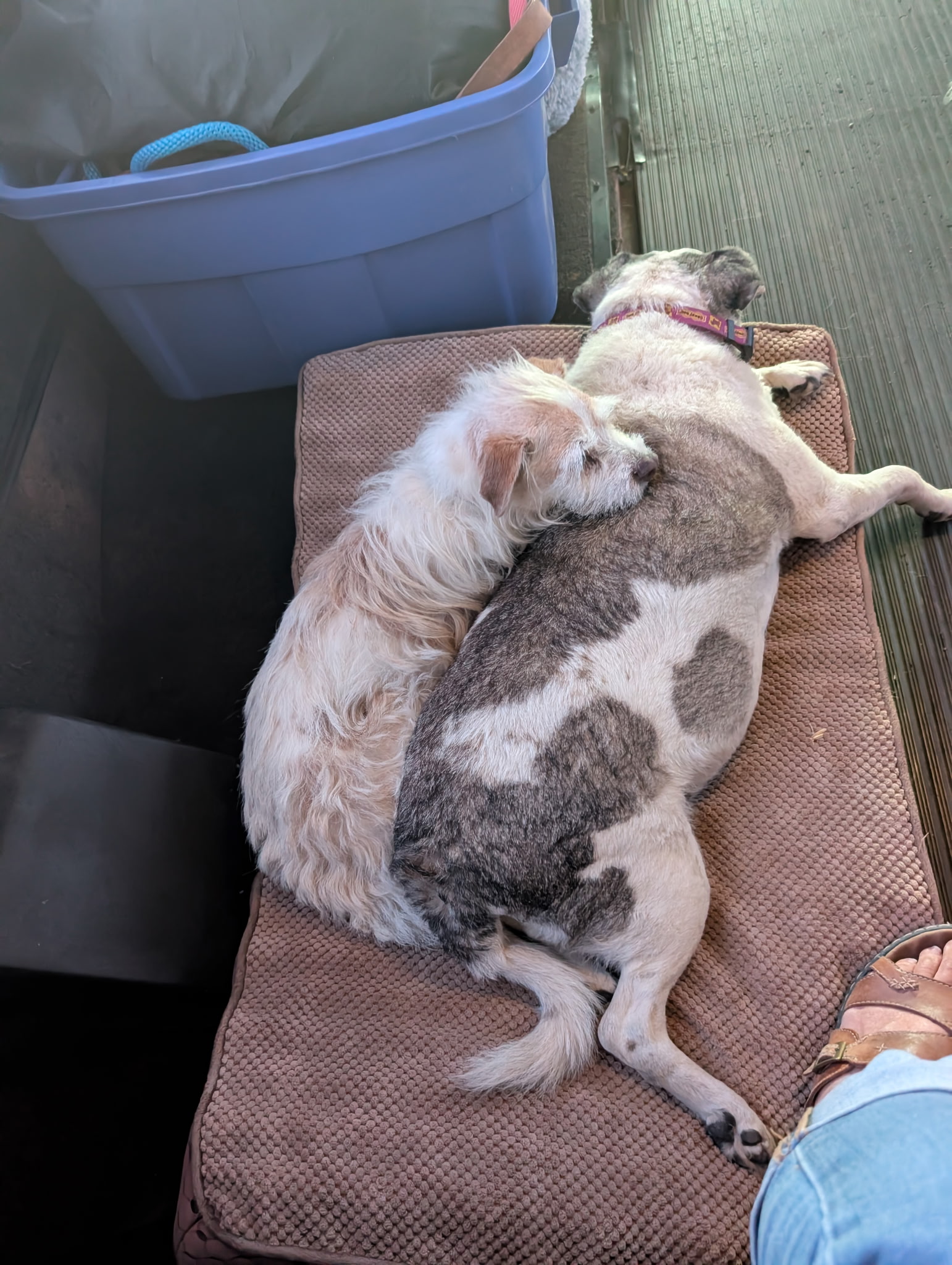 Helped with last minute loading by Sheila & Jeff K, Chris K, Patty O, Lisa B, and Stephanie A, we bid farewell to our years in Creston as 4 vehicles ambled east on a journey that would take 180 hours out of the lives of Chris Crofford, Kay Desmond, Susan and Bill Massey, Lori Hernandez, Teresa Rhyne, Tim Furman, Charlotte Meade, Cat and 33 dogs.